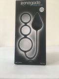 NS Novelties Renegade 3 Ring Circus Anal Plug features three erection-retaining rings that wrap around the cock or balls and a silky-smooth tapered plug for pleasure you can experience again and again. Delivers a fabulous anal filled up sensation, ultimate comfort and functionality. The Renegade 3 ring circus is made from body-safe silicone, phthalate free material and suitable for use with any lubricant. Available in large size and black color.